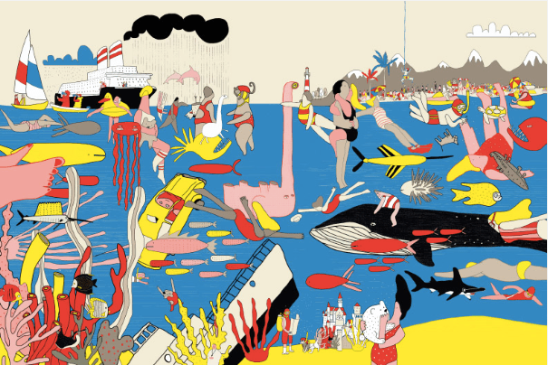 En Chile se está empezando a ver un muy buen trabajo de ilustradores e ilustradoras en el ámbito de los álbumes sin palabras, dice Carolina Ojeda. La mediadora destaca La playa, de Sol Undurraga, “un libro de gran formato que hace un recorrido por una playa, llena de personas diversas, de situaciones graciosas, de personajes especiales, sin una palabra”.